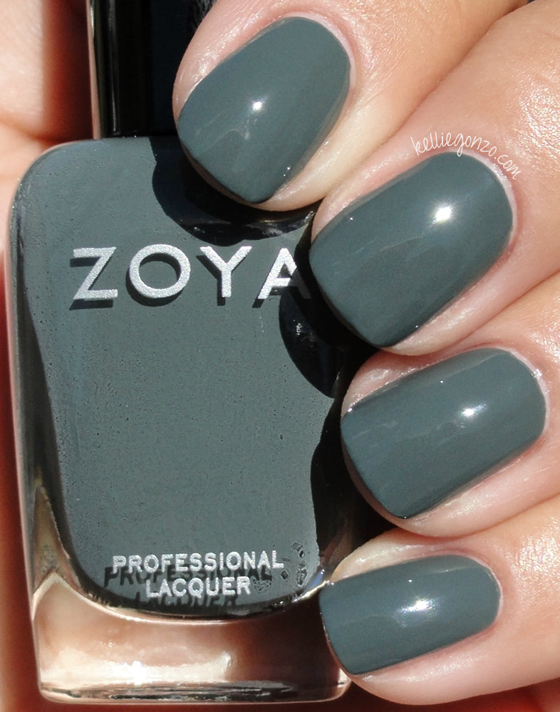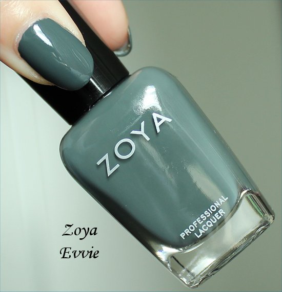 Evvie by Zoya can be best described as a dark smoky grey cream with strong teal green undertones. A custom-mixed runway shade created for designer Peter Som.